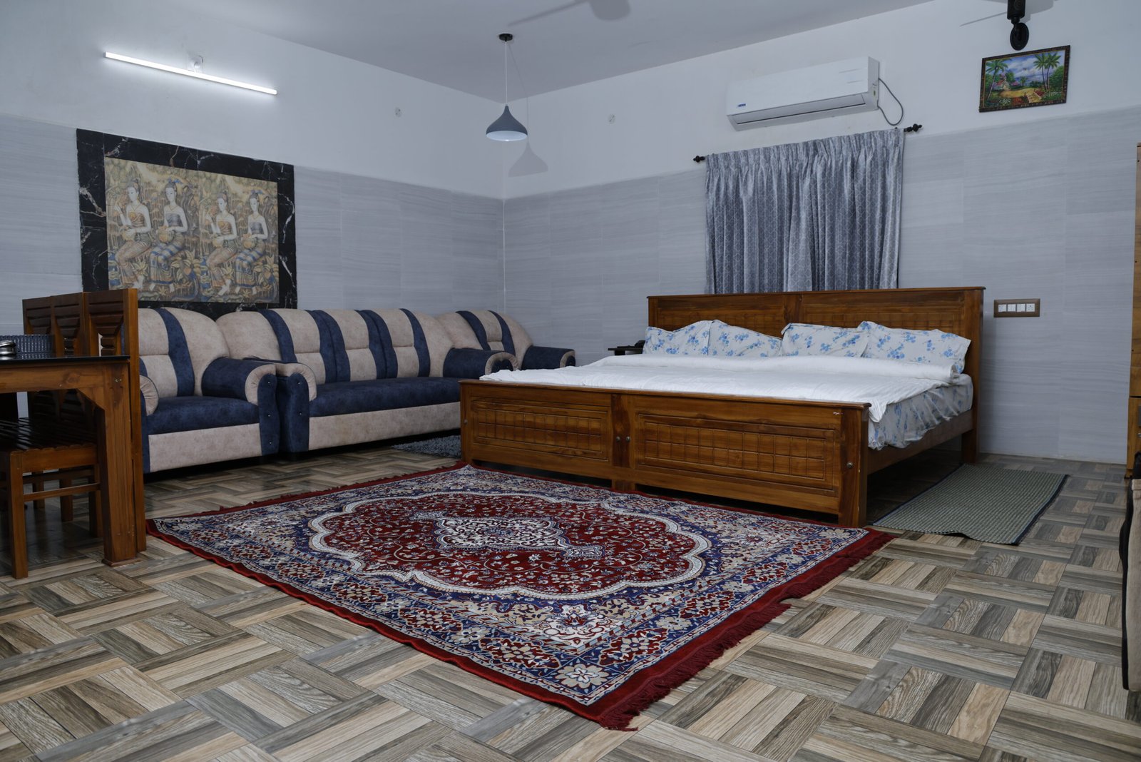 The room features a comfortable bed, air conditioning, free high-speed Wi-Fi, LED television, a spacious wardrobe, seating area, and a private bathroom with hot and cold water. Every detail is thoughtfully arranged to ensure guests enjoy both comfort and convenience during their stay.