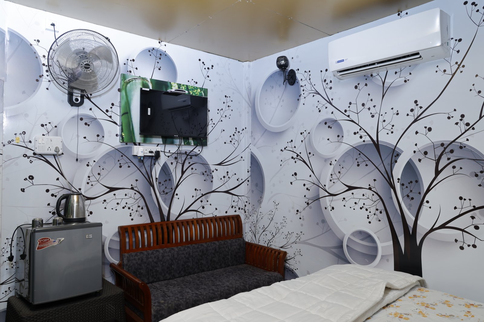 The room features a comfortable bed, air conditioning, free high-speed Wi-Fi, LED television, seating area, wardrobe, and a private bathroom with hot and cold water. Surrounded by a serene setting, the Mini Suite Hut allows guests to unwind while enjoying both privacy and convenience.